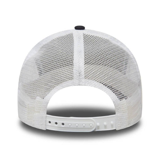 New Era TRUCKER cap with adjustable strap and mesh at the back of the cap. The New Era TRUCKER cap model has a structured, solid six-panel crown that copies the shape of the head. The back panels of the cap are open and connected by an adjustable strap. The team 3D logo is embroidered on the front of the cap.